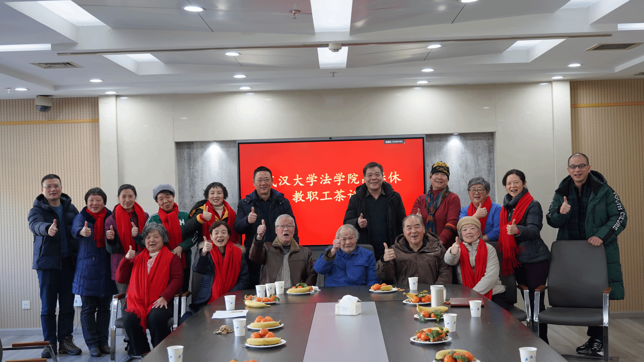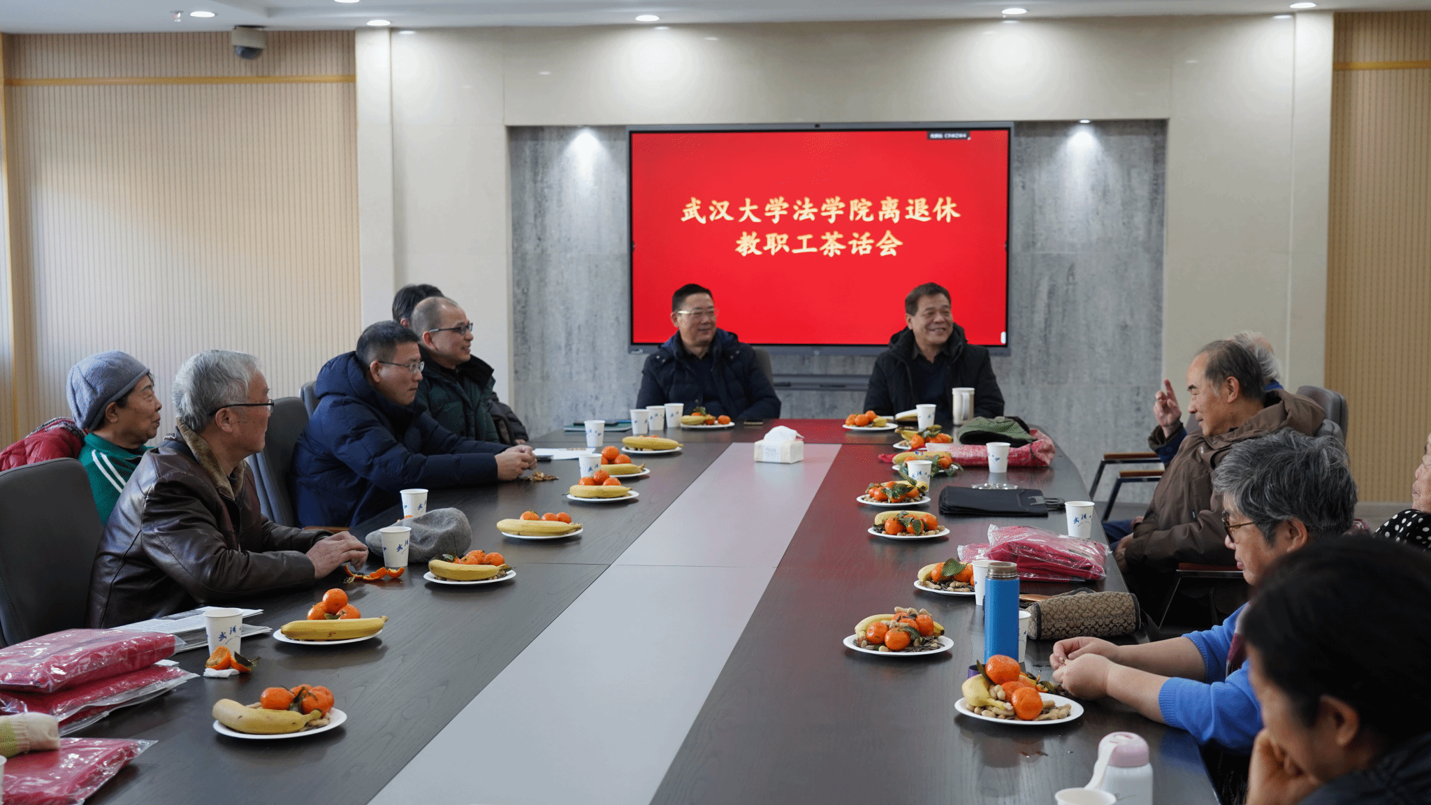 党委书记孙德元、院长冯果、党委副书记胡伟、邬明建,副院长吴育生,以及离退休教职工近20人参加。党委副书记、工会主席胡伟主持茶话会。