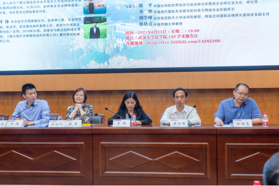主讲人报告结束后,四位与谈人依次分享了自身看法。郎平研究员以国际关系学者的视角进行分析,她认为由于规则具有非中性特征,各国都希望规则朝着有利于自身的方向发展,因此应当从利益博弈的角度看待各国争夺网络空间治理话语权的立场变化。李艳副所长从合法性和有效性、共通性和特殊性、软法和硬法、国家和非国家行为体的地位、规则条文表述与规则制定过程的价值等五方面分析了国际法适用于网络空间问题的争议。周学峰教授从准确理解“norm”的含义、在国家安全背景下考虑供应链安全、网络攻击归因中证据的重要性等三方面分享了对于UN GGE报告的理解,并就网络犯罪的概念和电子证据跨境提取等问题谈了看法。徐培喜教授从以单边或伪多边机制为对照分析三大谈判进程的作用、关注不同国家对网络战的理解、重视关键信息基础设施保护等重点规范的发展、揣摩规则条文用词的深刻含义等四方面对以上发言作了补充。