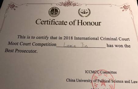 在历时半年的准备时间内,从指导教练到参赛队员无不齐心协力、全力以赴,共同投入了大量的时间与精力,对本次比赛的复杂案例进行了详细且深入地研习,充分查阅了诸多国际法及国际刑法的案例、著述和学说,并最终撰写完成了长达三万字的英文法律书状。在口头比赛阶段,我校队员凭借之前所作的充分准备、扎实的国际法功底、出色的英文表达能力及严密的逻辑和良好的综合素质赢得了法官们的一致认可。其中,发言人许臻棉在初赛和决赛阶段两次担任被告人律师,为团队晋级国际赛打下坚实基础;发言人金鹿敏和毛韫萦更以出色的表现分别斩获了最佳检察官和最佳受害人律师的个人奖项。