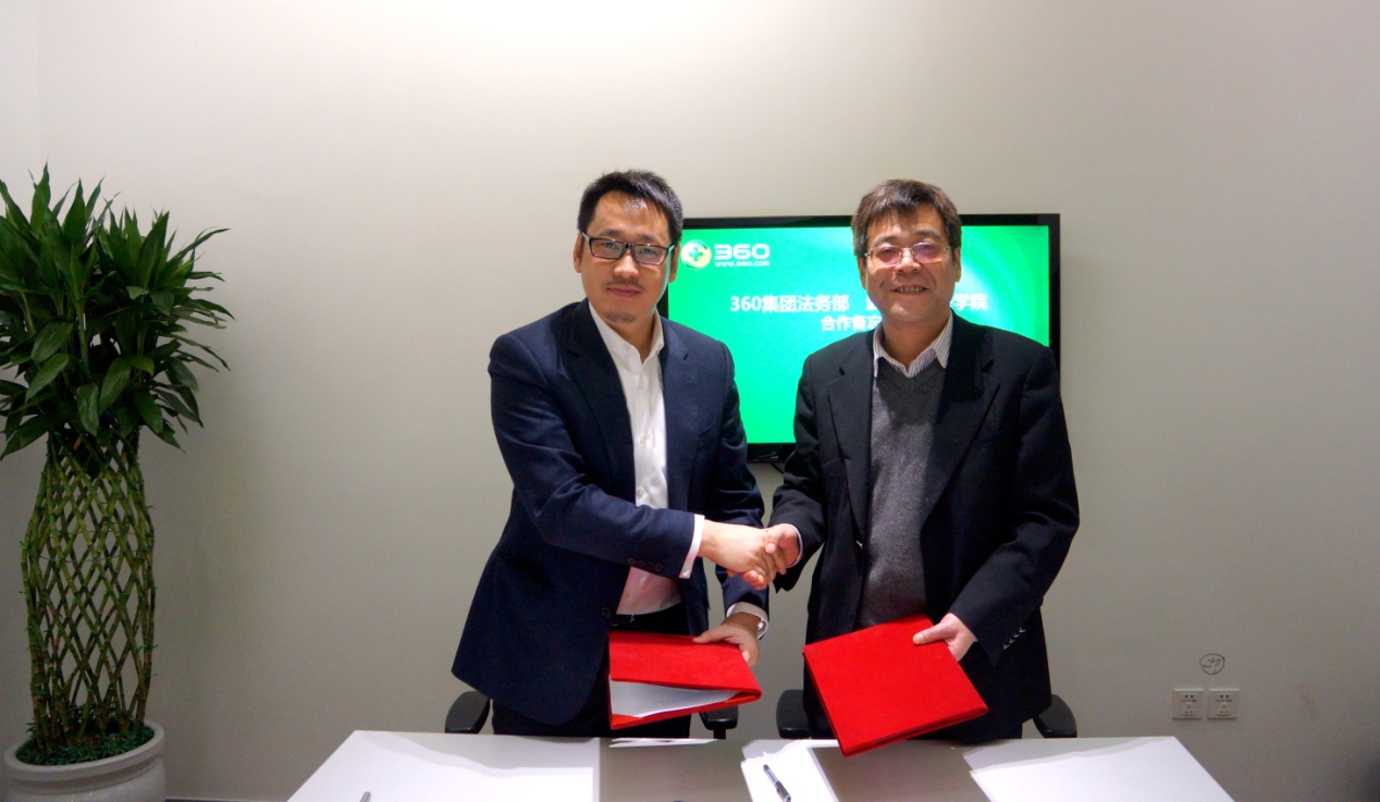 院长冯果教授、副院长黄志雄教授前往奇虎360公司,同360公司副总裁兼总法律顾问许坚先生、360公司法律研究院总监赵军先生等人就双方在网络法领域的合作进行洽谈,冯果院长与许坚副总裁兼总法律顾问共同签署了《北京奇虎科技有限公司与少妇性爱