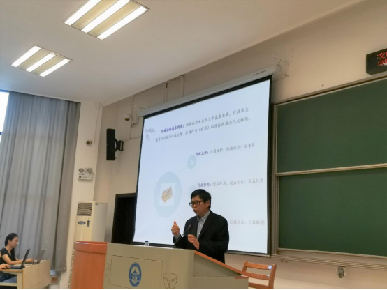 随后,江老师用简单易懂的语言为我们介绍了行政法的基本内容,行政法由行政主体,行政行为和行政救济三个板块构成。江老师重点讲述了行政行为与行政救济。行政行为可以被分为行政处罚、行政许可和信息公开:行政强制针对未发生的行为,行政处罚则针对已经发生的行为;行政许可指的是普遍禁止的解除;信息公开制度牵涉到阳光政府的概念,要让权力在阳光下运行。在解释行政救济时,江老师举了他最近接手的一个案子,该案关于户口迁移并且持续了十七年之久,江老师从多个方面分析该案件,并提出了在不同情况下的解决办法,江老师在分析案件的同时,讲授了行政救济的知识,将各种含义、意义以及案例清晰地罗列同学们眼前,生动形象且易于理解。