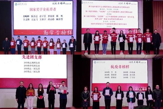 In 2020, the Wuhan University School of Law has achieved many promising results in terms of study, practice, competition and resistance to epidemics. The leaders presented awards to outstanding students and outstanding teachers of the Law School. They are: students who have been awarded the National Scholarship, Han Depei Scholarship, Ma Kechang Scholarship and other scholarships, and who have the top three GPAs; Team members who won awards in the 5th China Youth Volunteer Service Project Competition, the 6th China International "Internet+" Student Innovation and Entrepreneurship Competition and the 2020 National Student Innovation and Entrepreneurship Training Program; Advanced Class Collectives and Excellent Youth League Branches of Wuhan University for the 2019-2020 academic year and other outstanding Associations; students on the frontline of fighting against epidemic. In addition, the leaders also presented the title of "Outstanding Tutor of Extracurricular Academic and Scientific Innovation Activities" to Xiang Yan, Ban Xiaohui and Zhang Qiong, and the title of "Outstanding Class Tutor" to Qiao Xiongbing and Wang Defu.