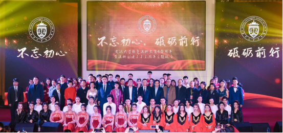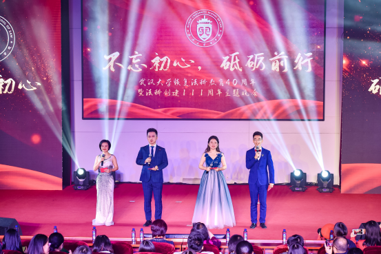 On the evening of November 25, 2019, nearly 400 faculty members, alumni and students gathered in the moot court to celebrate for the 40th birthday of Wuhan University Law School. The party was hosted by Mr. Jing Lijia, a teacher of Law School, Dr. Xia Jinlai, an alumna of Law School, Ren Peng, a doctor of grade 2019, and He Yuwei, an undergraduate student of grade 2018.